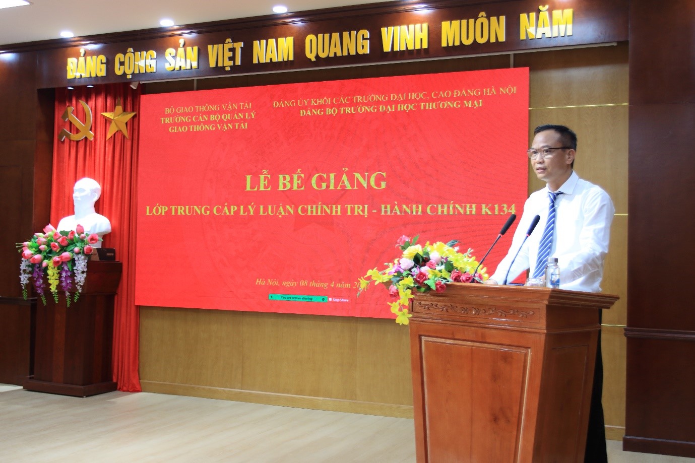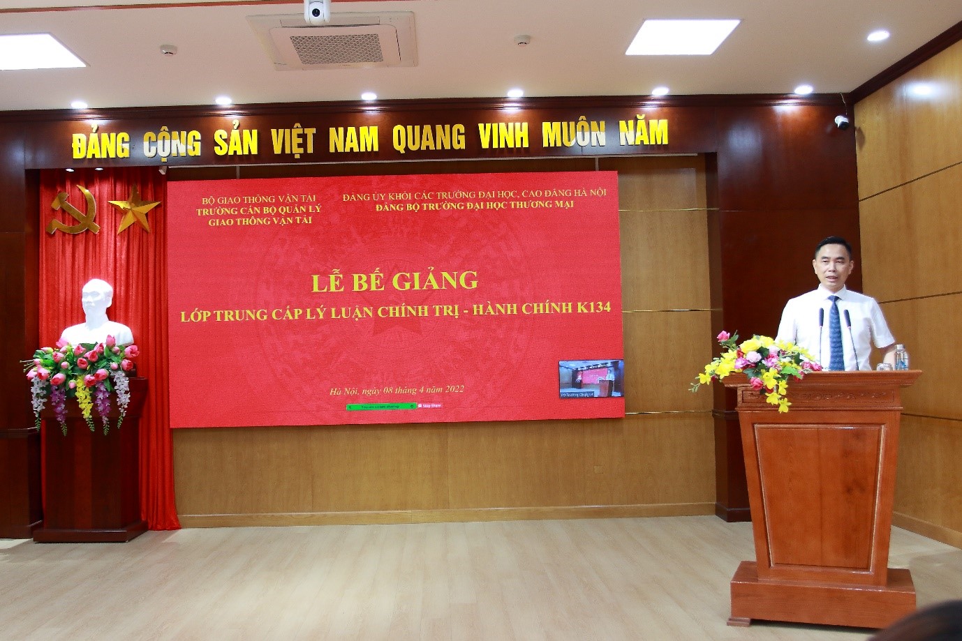 Ngày 08/04/2022, Trường Cán bộ quản lý giao thông vận tải phối hợp cùng Trường Đại học Thương Mại tổ chức bế giảng Lớp Trung cấp Lý luận chính trị - hành chính K134 dành cho cán bộ, giảng viên của Trường Đại học Thương mại theo hình thức trực tiếp kết hợp trực tuyến.