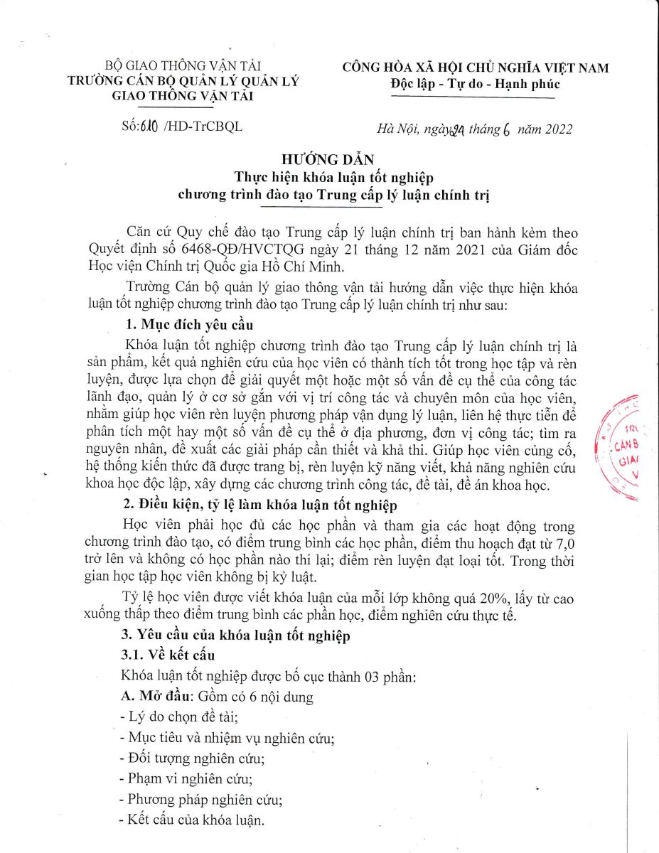 Hướng dẫn thực hiện khóa luận Trung cấp lý luận chính trị 30/06/2022 Lượt truy cập : 18 Bình luận : 0 Chia sẻ : Tải về Hướng dẫn file PDG: Tại đây Thêm bình luận mới Bình luận của bạn đã được gửi thành công. Cảm ơn bạn! Làm mới Lỗi. Vui lòng thử lại Gửi bình luận